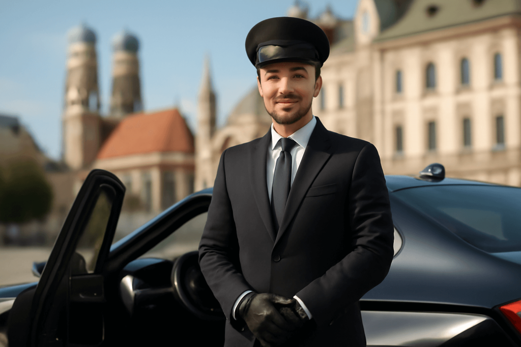 In vielen Chauffeurservices gehört das Türöffnen zum Service. Warten Sie einen Moment – der Fahrer wird Ihnen die Tür öffnen, sofern dies vorgesehen ist.